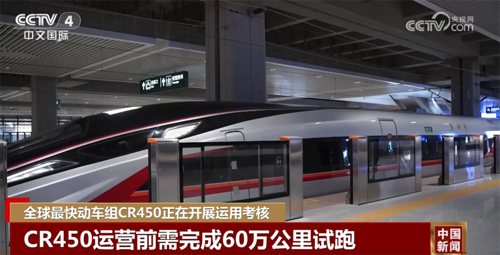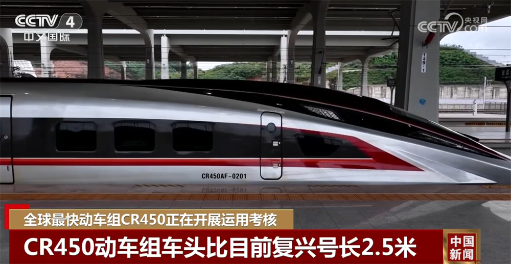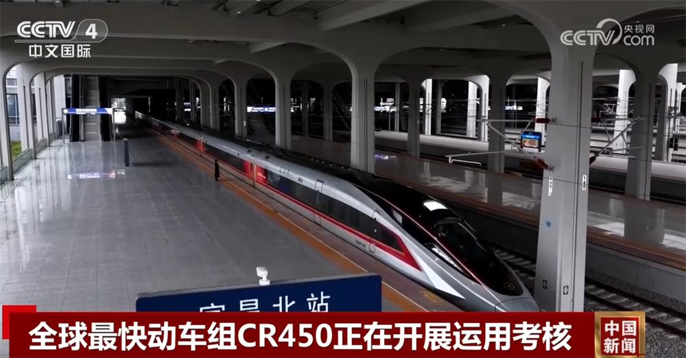 被称作“全球最快高铁”的CR450动车组样车去年底公布后,目前正在不同速度、不同场景中进行多项试验。试验期间,CR450动车组跑出了动车组单列时速453公里、相对交会时速896公里的最新纪录。目前,CR450动车组正在沪渝蓉高铁开展运用考核。