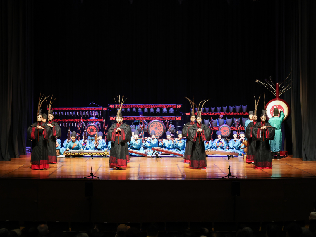 在香港站的演出中,玉振金声雅乐团运用编钟、句鑃、建鼓等中国古代乐器,融合礼、乐、舞,呈现了《朝乐-文舞》《秋夜读易》《大濩》《建鼓迎宾》《楚商》《剑器浑脱》《望月婆罗门》《盈袖暗香来》《龙腾虎跃》九个精彩节目。此外,雅乐团总指导叶佳颖博士亲自登台进行导聆。通过生动细致的讲解,观众不仅能领略乐声之美,更能理解乐曲背后的文化气韵,使古老音乐更亲切地走入大家心中。