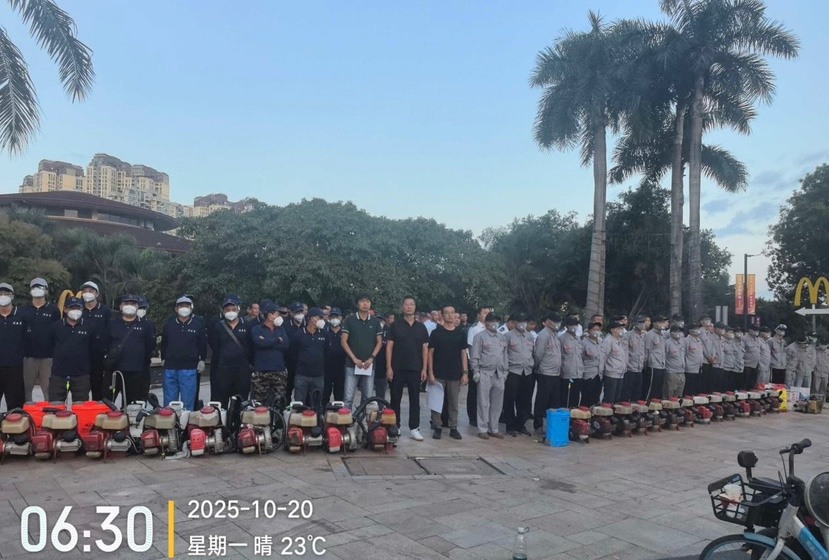 此次行动规模宏大,三大社区共出动231名消杀人员与物管人员。他们宛如一支装备精良的“灭蚊战队”,全部配备了先进的宝特星超微粒喷雾器,这种喷雾器堪称消杀领域的“黑科技”,能够产生超低容量的雾滴,可深入到蚊虫藏身的各个隐蔽角落,实现精准、高效的消杀。