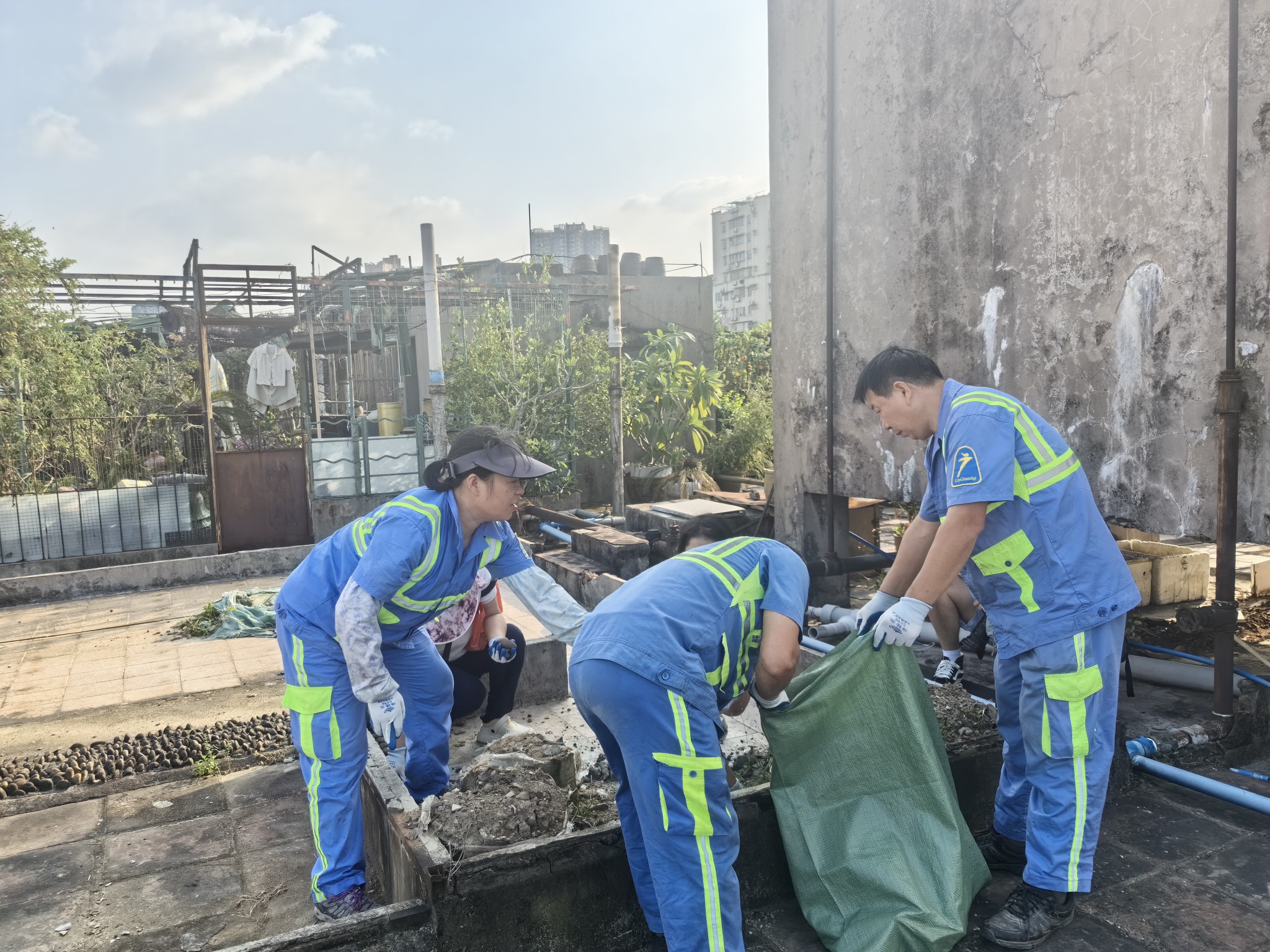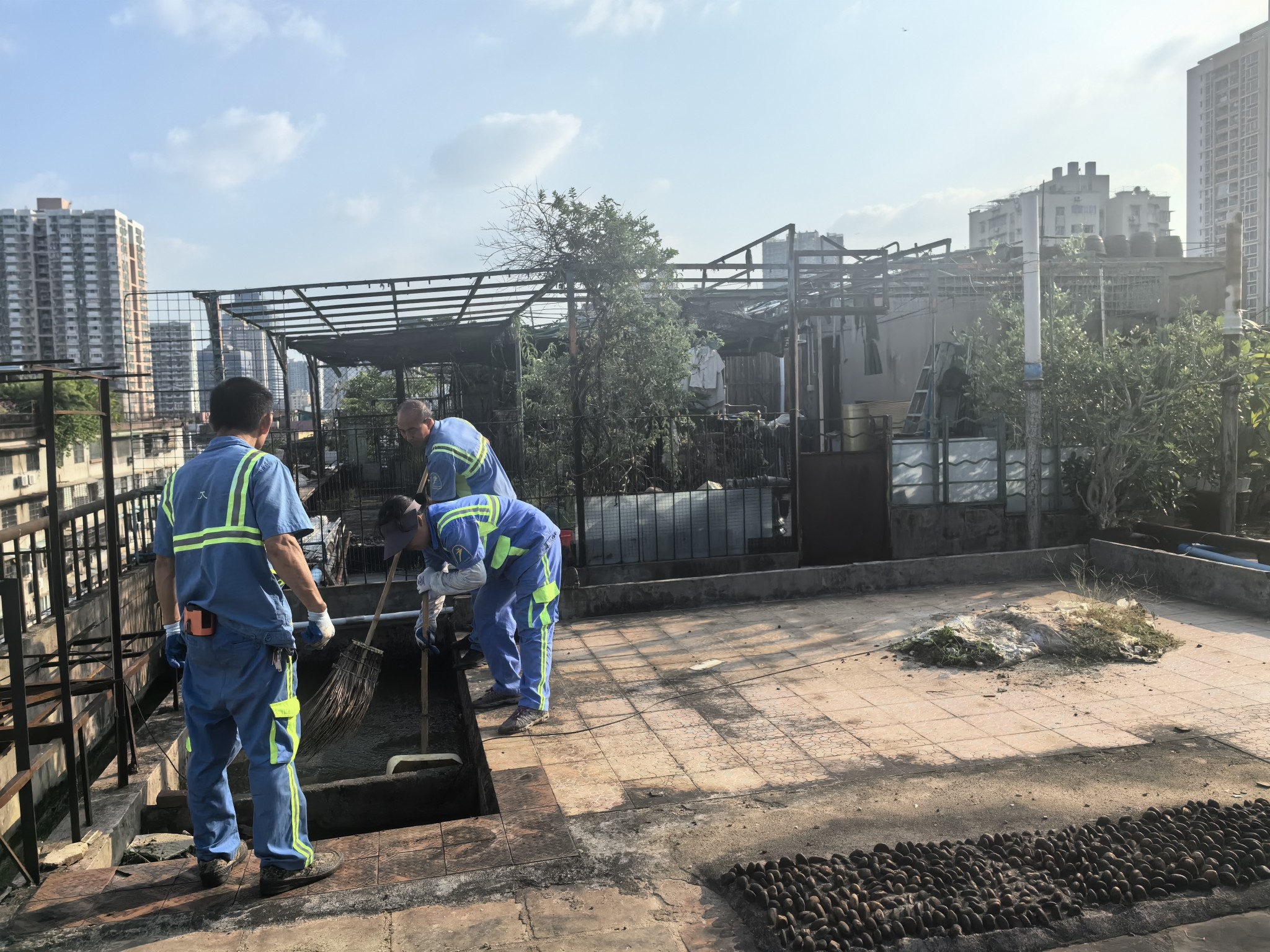 记者在大塘街看到,该街道以重点区域为中心,联动疾控部门加强蚊媒监测,有针对性地加强消杀,强化孳生地源头治理,聚焦房前屋后、背街小巷等重点区域,清除垃圾、积水及杂物,推进沟渠治理和防蚊设施建设。建立街道-社区-网格三级巡查机制,确保孳生地动态清零。强化健康监测。做好居民宣传工作,提升群众卫生意识与参与度,引导居民群众做好个人防护,出现可疑症状及时到就近社卫中心就诊排查。重点排查楼宇天台、机团单位、老旧小区等易忽略区域。记者跟随工作人员到德政中社区一栋居民楼天台进行清扫,该天台有一处排水池的去水位被树叶堵塞,工作人员进行了清淤排水处理。