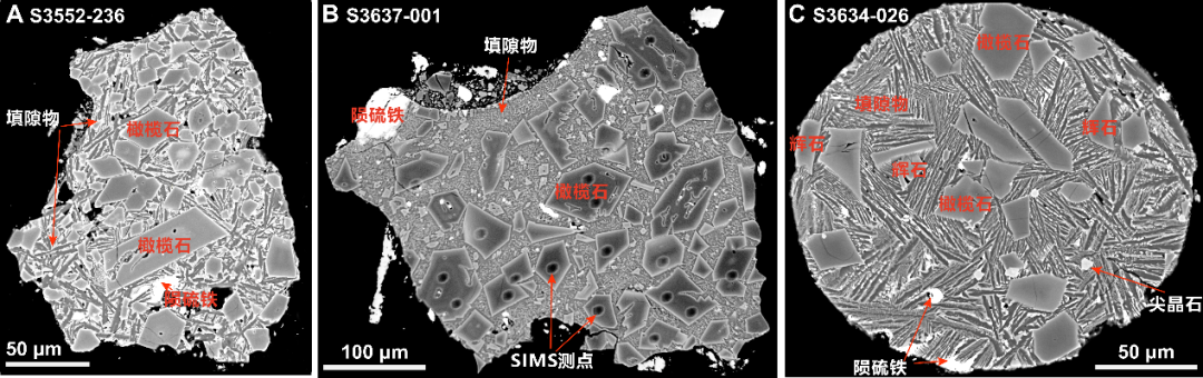 由中国科学院广州地球化学研究所徐义刚院士、林莽研究员指导,王锦团副研究员与博士研究生陈志铭等组成的研究团队,通过对嫦娥六号月壤样品开展系统的岩相学分析以及橄榄石微量元素和氧同位素组成研究,识别出来自CI型碳质球粒陨石的撞击残留物。科研人员指出这些碎片是CI型碳质球粒陨石母体撞击月球表面,发生熔融后快速冷却结晶的产物。该研究系统地建立了识别地外样品中陨石物质的方法。