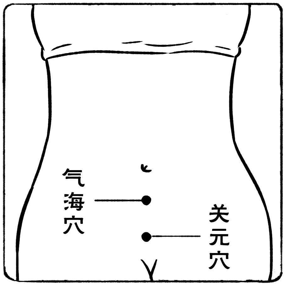 关元穴在下腹部,前正中线上,当脐中下3寸。