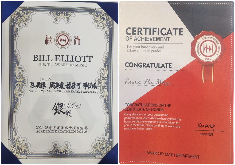 令人惊叹的是,朱美豫的才华远不止于琴弦之间。她既能以琵琶演绎音乐之美,斩获“学术十项全能赛”音乐银奖,亦能将思维潜入科技的深邃海洋,跃动于美术的绚烂空间。她关心海洋生态,创意项目“蔚蓝绝响”在2024-2025学年全球发明大会中国区总决赛中荣获全国三等奖;她关注水资源,更早的“水循环过滤系统”项目已在广东赛区摘银。她的优异表现不仅于此,更被授予2024-2025学年城市绿洲学校“学校年度最佳学生”的荣誉。