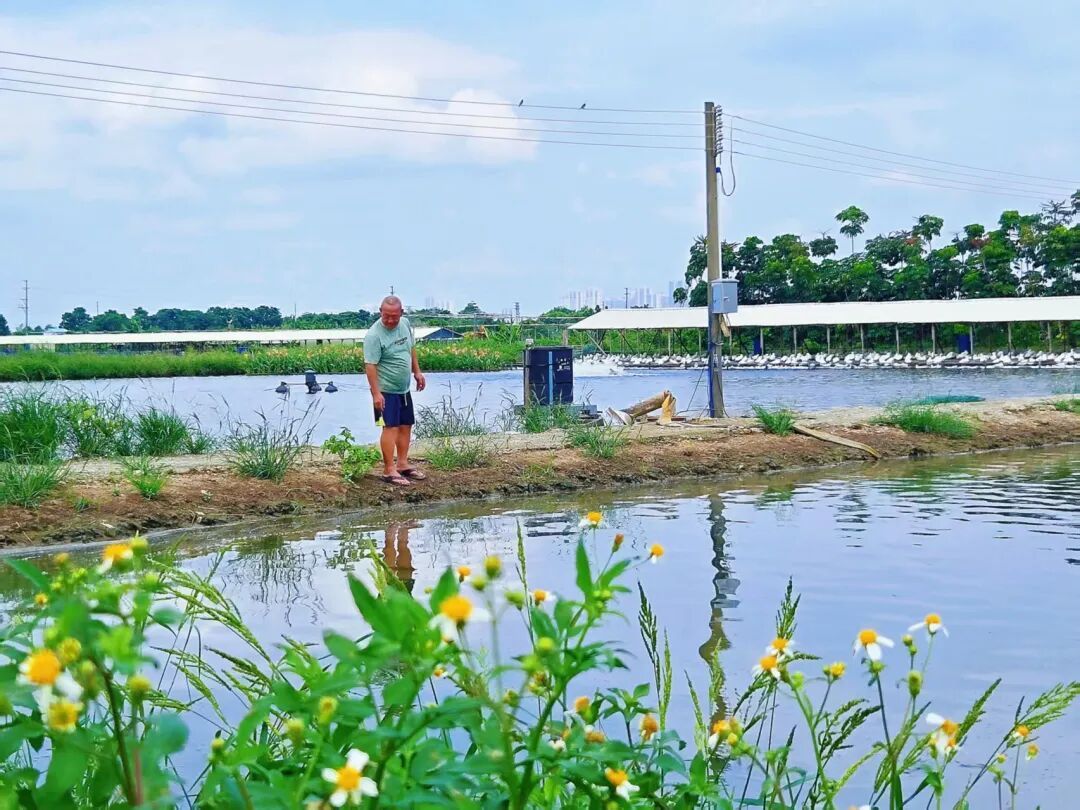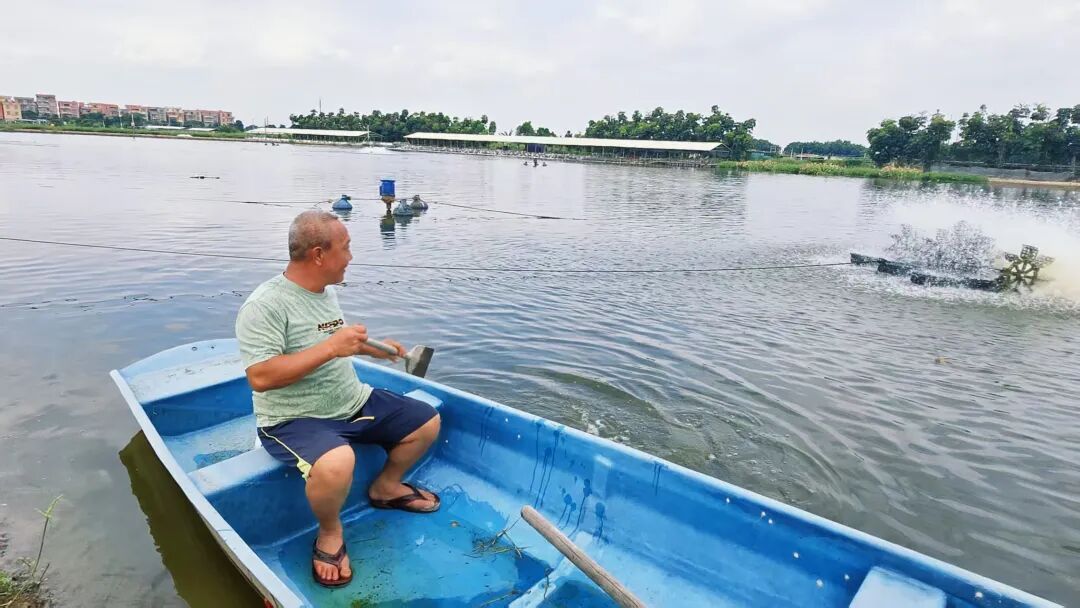 养殖户胡志驹共租有120亩鱼塘,自2002年来到海鸥岛,他已从事养殖行业24年。多年来,他以养殖鲩鱼、鲮鱼为主,混养南美白对虾、罗氏虾、麻虾、明虾、鳝鱼等,同时还养殖鸭子,形成“鸭鱼虾”生态循环养殖模式。