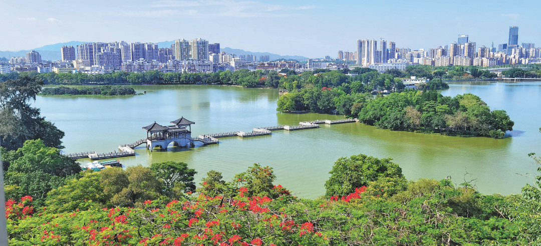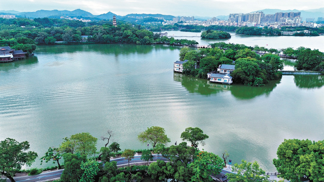 惠州西湖与城市高楼大厦、市井烟火融为一体,构成了“半城山色半城湖”的绝妙景观。(郑盈供图)