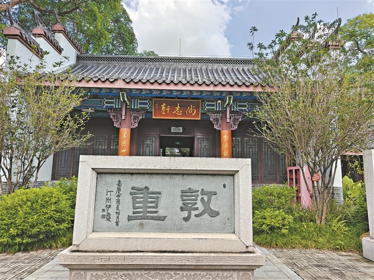 丰湖书院内可见清代惠州知府伊秉绶手书的“敦重”石刻拓片。