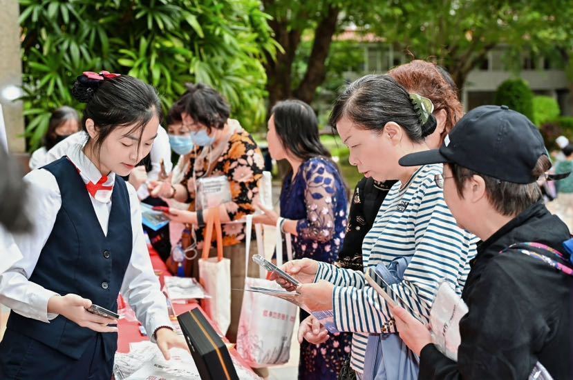 在文艺活动如火如荼进行的同时,学校精心组织的“健康义诊”“中医药集市”也吸引了大量老年朋友驻足。来自三甲医院的主任、专家们耐心细致地为前来咨询的老年人解答各类健康疑问,并提供个性化的养生建议,现场还可以体验推拿、头疗、火龙罐、耳穴压豆、易罐等中医适宜技术。“学校太贴心了,让我们心里倍感温暖!”不少银发学员感慨,平时挂号都挂不到的专家,能在现场免费坐诊,大家不用赶去医院,在校园里就能享受到如此便捷、专业的医疗服务,感受到了学校无微不至的关怀。