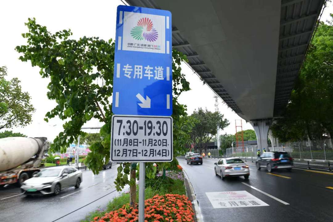连接驻地酒店至开幕式和比赛场馆的专用车道启用时间为2025年11月8日至11月20日、12月7日至12月14日,每日7时30分至19时30分。具体为广园快速路(广园立交至黄村立交段)、车陂路(广园快速路至大观路段)、大观南路(奥体路至广园快速路段)、奥体路(大观南路至广园快速路段)、奥体南路(奥体路至天茂路段)、天茂路(奥体南路至广园快速路)、人民北路(流花路至环市路段)、环市路(人民北路至水荫路段)、天河路(水荫路至五山路段)、体育西路(天河路至天河北路)、中山大道西(五山路至华南快速路)。