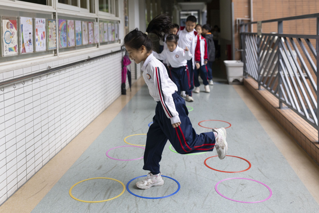 此前,今年2月,广州市教育局表示将全面推进校园综合体育活动不低于两小时,并提出全市义务教育阶段学校要通过落实每天1节体育课等举措,保障学生校内每天综合体育活动时间不低于2小时。开学已近两个月时间,学校的开展情况如何?据介绍,针对当前学生群体中存在的“小眼镜”“小胖墩”等问题,盈彩美居小学通过设计与组织体育活动,提升学生身心健康水平。