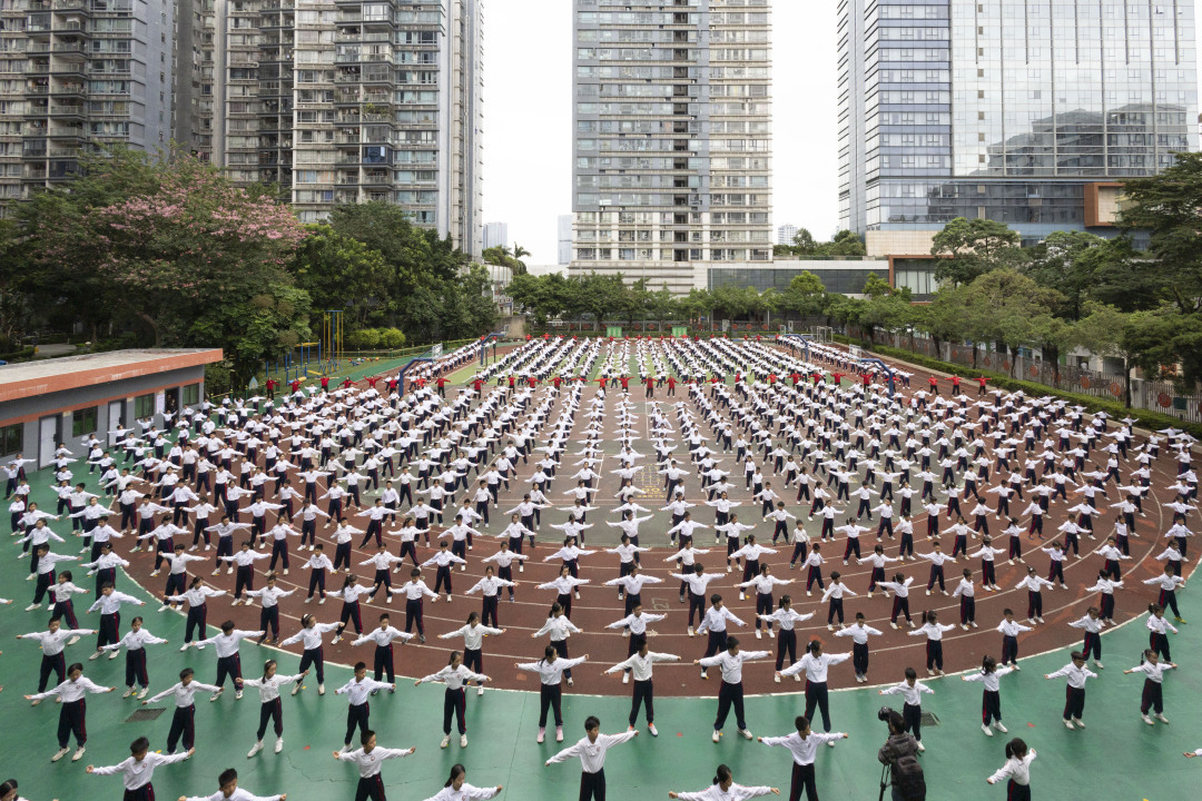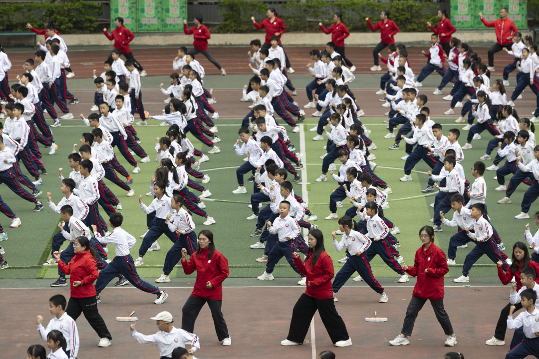 盈彩美居小学校长匡昱介绍,学校打造了三套大课间方案,其中,武术大课间融入了武术操、南拳和打跳舞,让学生在一招一式中传承中华传统文化;体能大课间、室内大课间融入了粤韵操,在雨天开展,确保运动不中断。