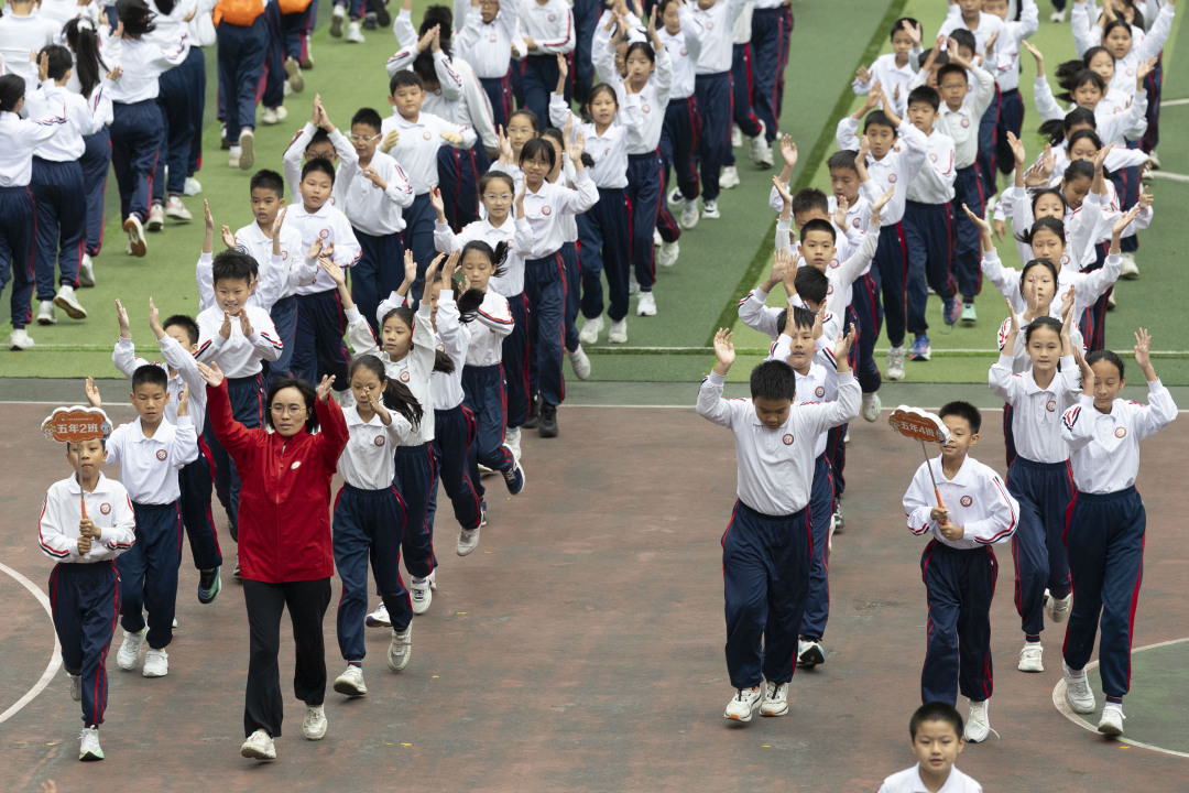 10月22日,由广州教育学会主办的“每天综合体育活动2小时”现场会在广州市天河区盈彩美居小学举行。在40分钟的大课间中,同学们进行了跑操、武术操、打跳舞等运动,活力满满。有同学说,这学期自己能在校园内进行2小时的体育锻炼,回家后还会继续运动,身体长高了,体质变好了,感冒也少了。