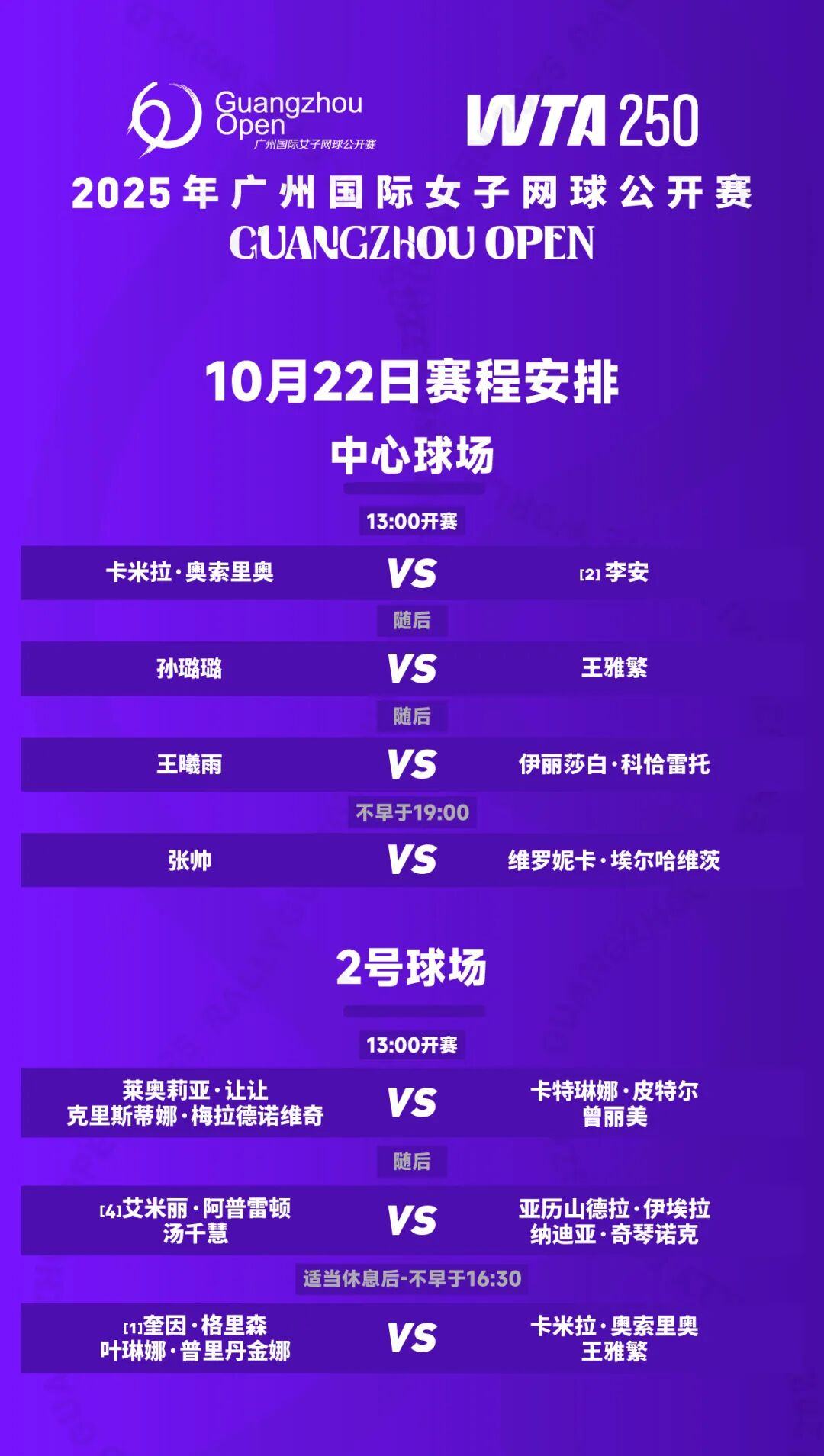 10月22日,三人都将向八强发起冲击,欢迎来到南沙国际网球中心,为中国金花加油,观看国际高水平的精彩对决!