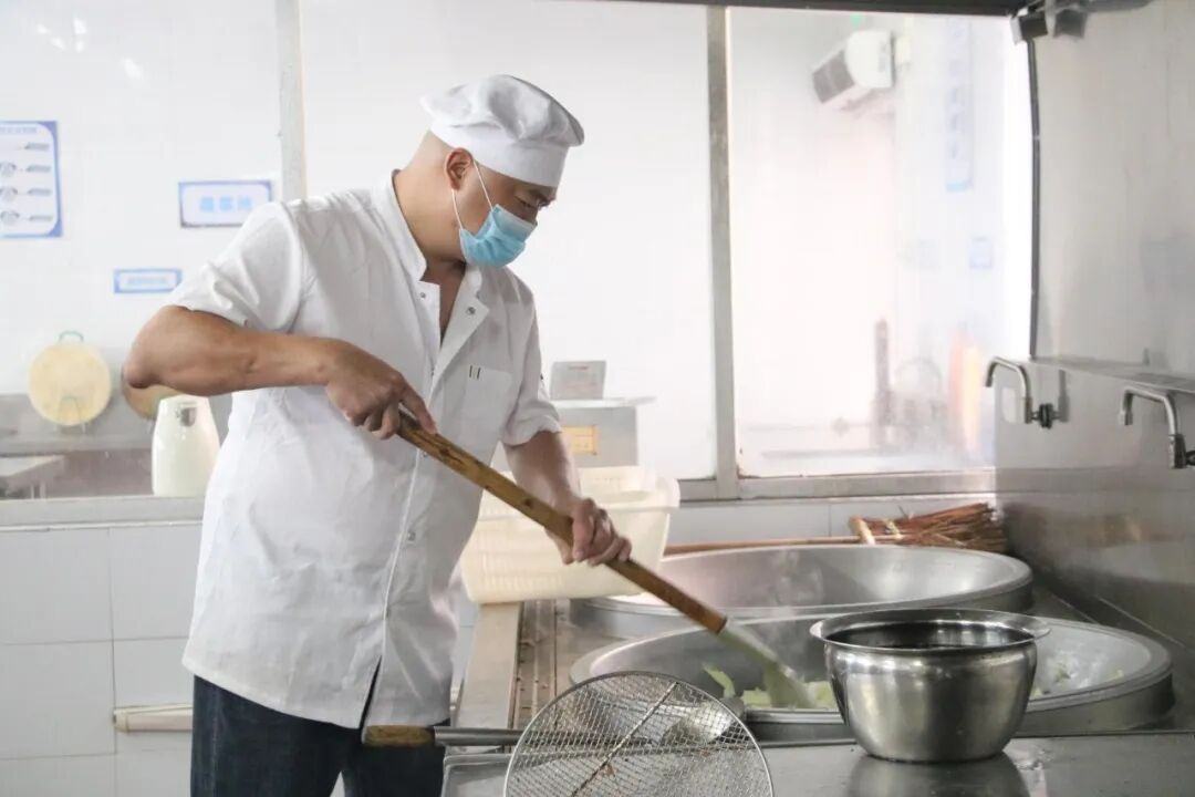 眼前这位高大壮实的大厨便是何炽权,他是番禺沙湾人,三年前来到谢村海觉幼儿园担任主厨。此前他曾在星级大酒店、企事业单位饭堂等做过大厨,还将一手好厨艺带出国门,曾在印尼创业开餐厅。
