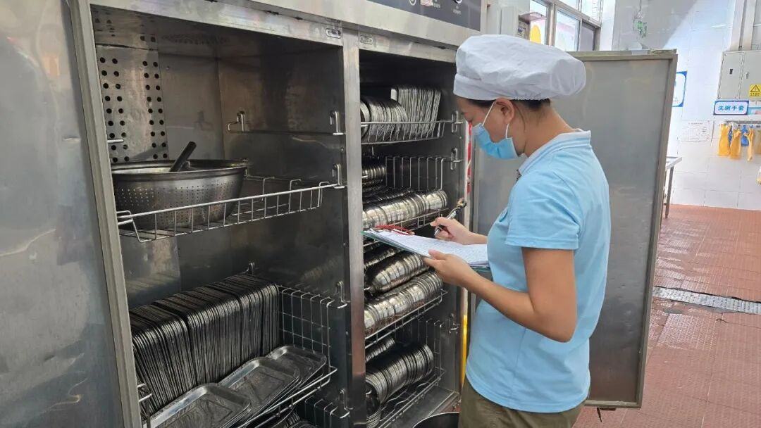 李园长告诉小e,谢村海觉幼儿园的厨房在2018年被评为餐饮服务食品安全A级厨房,无论是厨房环境卫生、原料采购加工制作,餐饮具清洗消毒保洁还是人员健康与卫生,都是高标准规范管理,只为打造一个放心、安心、舒心的就餐环境。