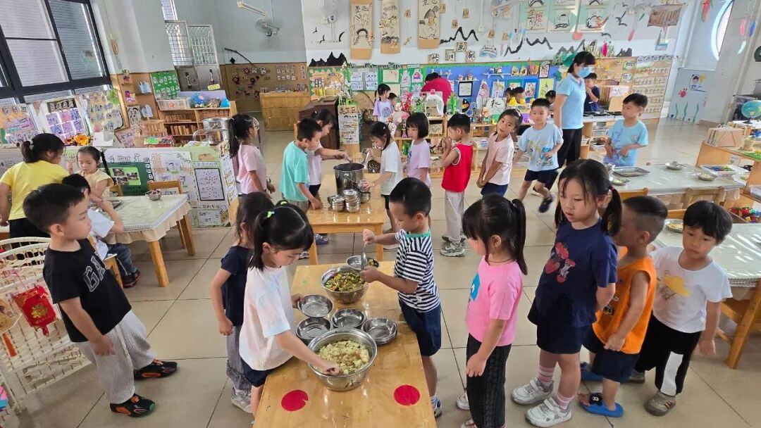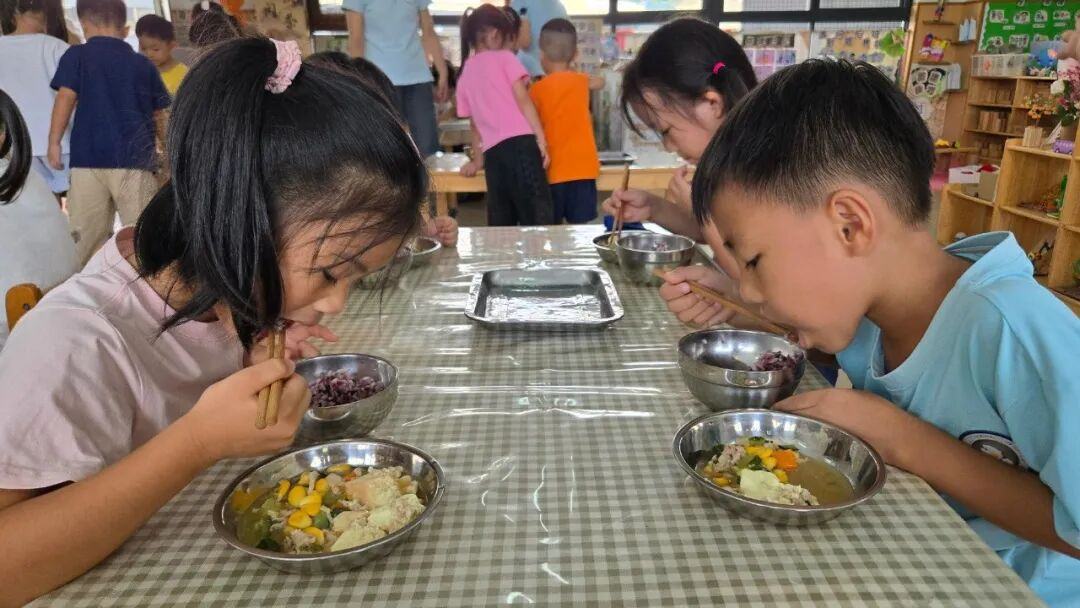 小e在谢村海觉幼儿园的公众号上看到,该公众号每周都会推送一篇幼儿园“食”光记,将幼儿园一周的营养食谱提前公布。李园长介绍,幼儿园每周营养食谱是由园办、保健室、厨房三个部门共同制定,坚持膳食“全面、均衡、营养”的原则,尽量做到平衡膳食原则,保证食物多样,合理搭配、科学配比,且每周更新不重复,“食”刻守护孩子的健康。