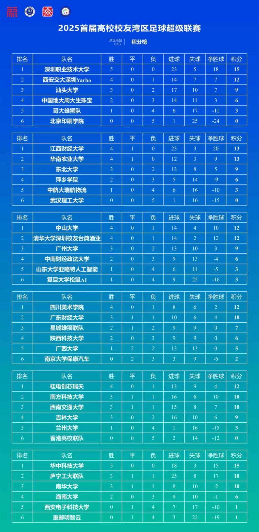 经过两个多月五轮共90场的精彩角逐,以“湾区高超,才聚深圳,全民全运,乐活福田”为主题的“2025首届高校校友湾区足球超级联赛”(以下简称“湾区高超”)小组赛,于10月12日在福田海滨生态体育公园完美收官。