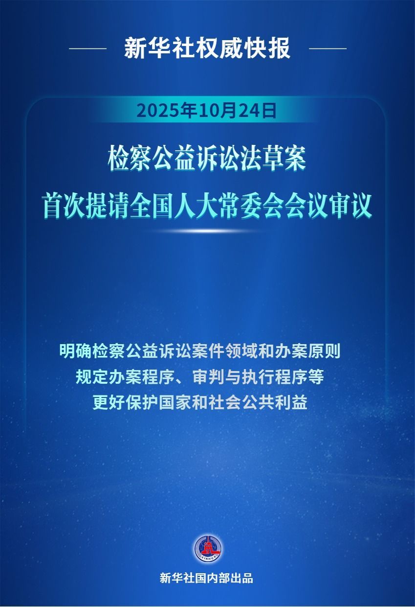 检察公益诉讼法草案10月24日提请十四届全国人大常委会第十八次会议审议。草案共6章53条,对检察公益诉讼办案领域、原则、职权配置及办案程序等作出规定。
