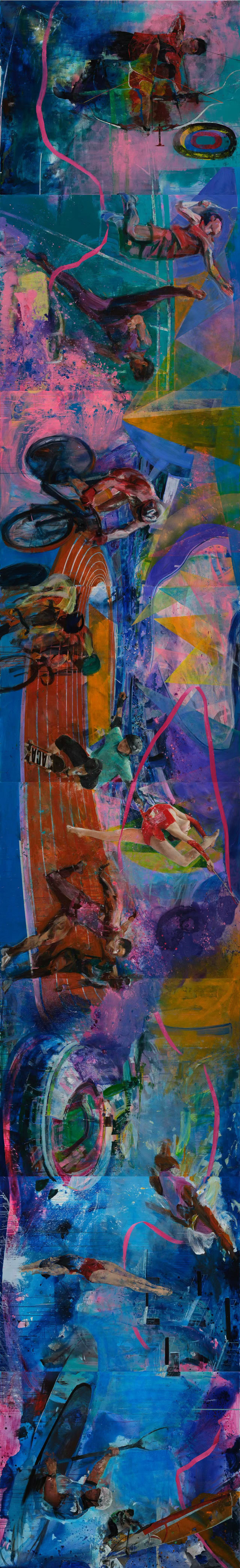 尤为值得一提的是,为向本次全运会献礼,由广州画院在职画家牵头,集结广东青年美术力量共同创作《全运之光》《菁英荟萃》《超越》三幅主题巨制,传递全运激情、焕发湾区活力,从多维度定格竞技赛场的动感瞬间、城市发展的生机活力、湾区建设的壮阔图景,转化为兼具东方美学意蕴与时代精神的艺术表达,构建起体育赛事与城市文化对话的艺术场域。
