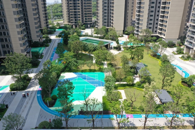 在配套设施上,社区内外各类配套应有尽有。社区周边高标准配建18班幼儿园、36班九年一贯制学校、敬老院、社区服务中心、肉菜市场和商业设施;社区内部设置约400米环形跑道、儿童游乐场、4个羽毛球场、游泳池和多处健身场地等,真正实现从“住有所居”到“住有优居”的升级。