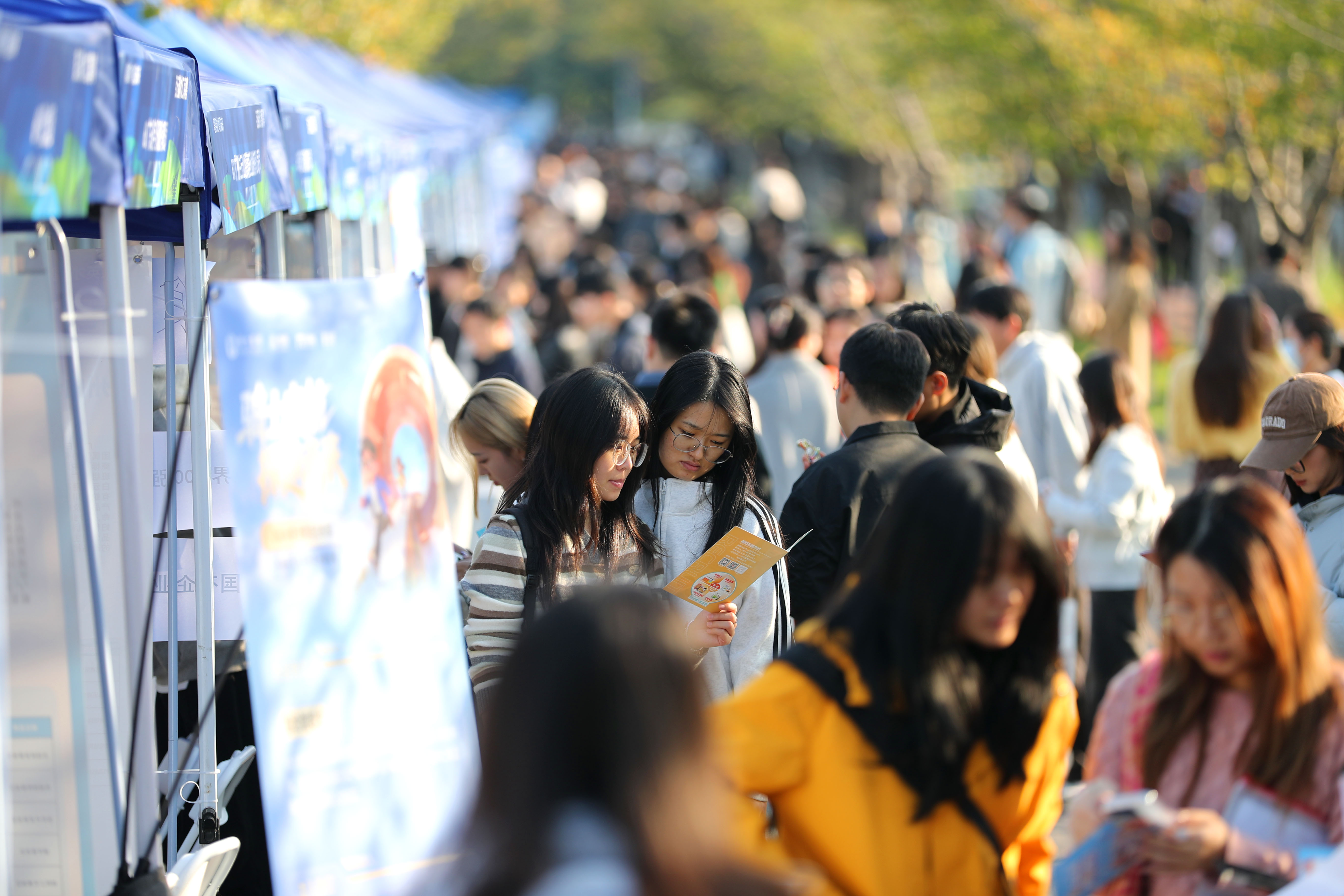 2025年10月23日,在武汉大学专场,招聘会现场人潮涌动。