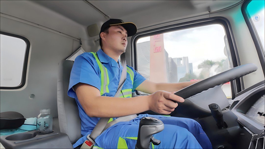 尹硕是一名大型环卫作业车辆驾驶员
