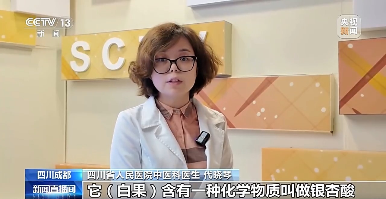 四川省人民医院中医科医生 代晓琴:我是建议我们正常的成人一天也就10颗或者是15颗就够了,也不建议大家每天都来吃这个白果。