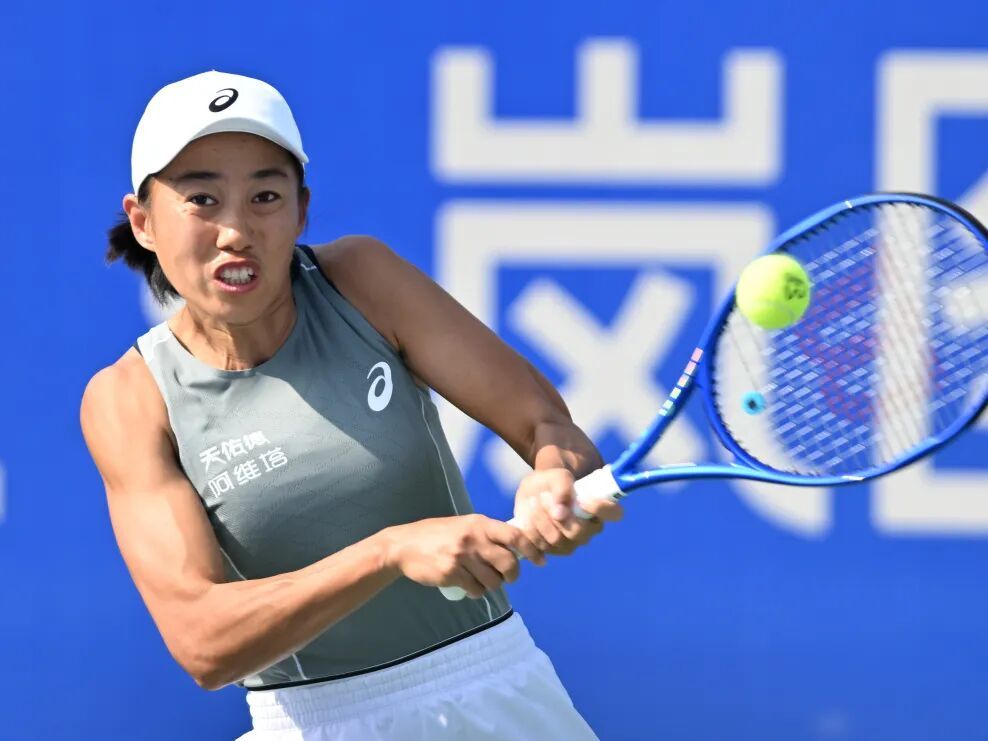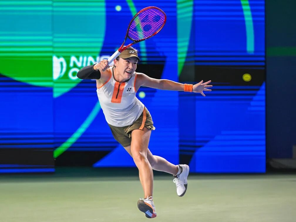 10月8日,张帅在比赛中回球。当日,在2025年WTA武汉网球公开赛女子单打第二轮比赛中,中国选手张帅2比1战胜罗马尼亚选手科斯蒂亚,晋级下一轮。新华社记者 程敏 摄