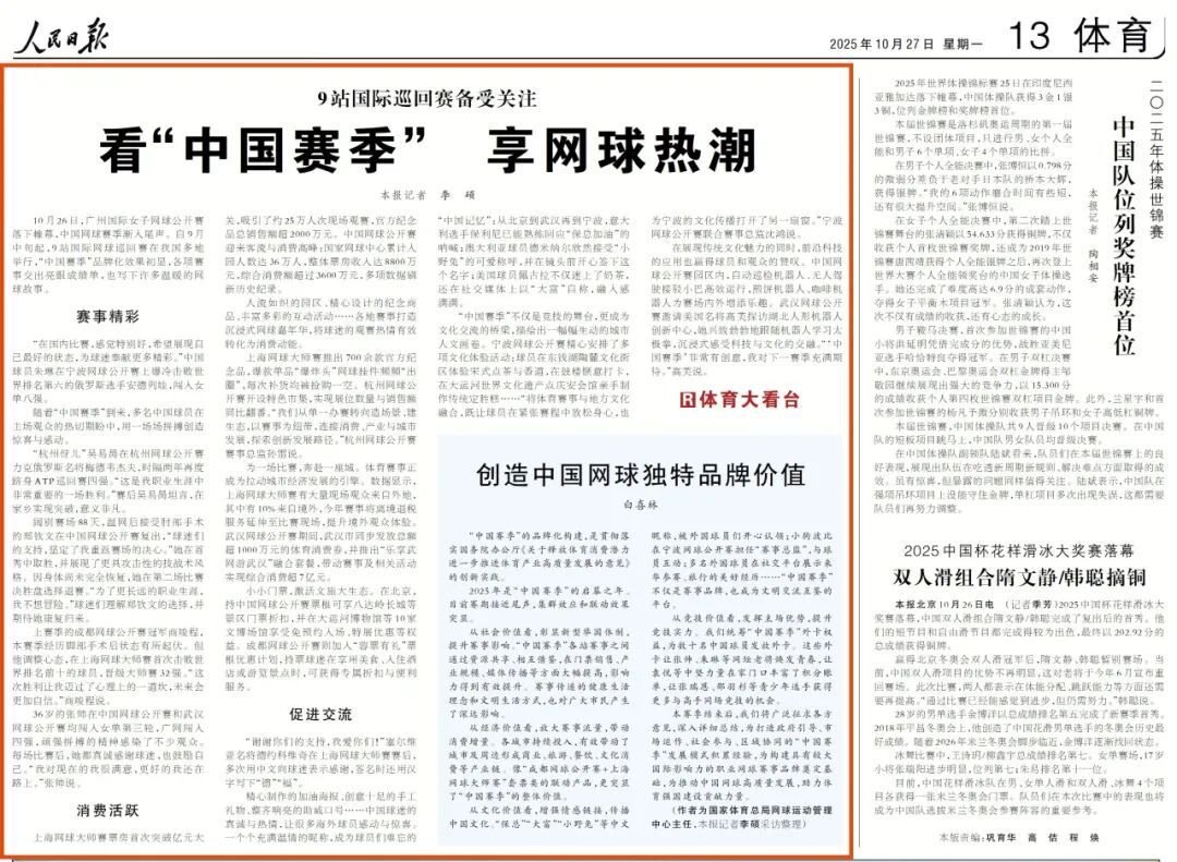 本赛季结束后,我们将广泛征求各方意见,深入详细总结,为打造政府引导、市场运作、社会参与、区域协同的“中国赛季”发展模式积累经验,为构建具有较大国际影响力的职业网球赛事品牌奠定基础,为推动中国网球高质量发展,助力体育强国建设贡献力量。