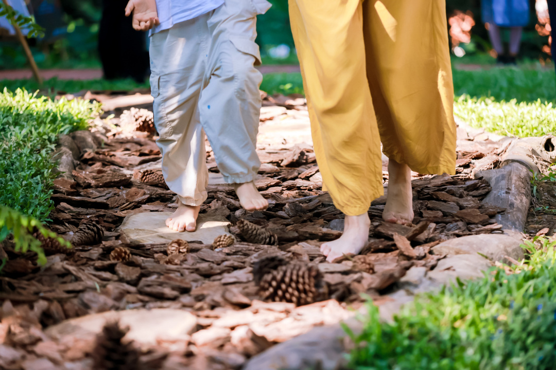 另外三条康养径,也是处处生机盎然。在云台艺术疗愈康养径(3.5公里),串联玫瑰园、雨林植物园,设有200米赤足步道,步道由鹅卵石与细沙铺设,兼顾舒适与穴位刺激。康养径设有1处森林自然学校,周末开展“森林食疗体验”,向市民游客提供茯苓莲子粥、金银花茶等等。