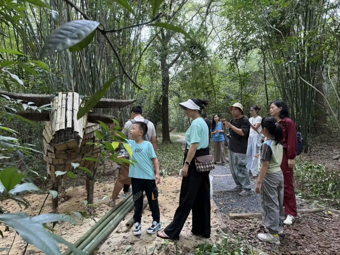 另一场以“听风·赏竹·做风铃”为主题的自然科普手作活动,在白云山明珠楼景区翠竹园举行,同样让人感受自然与康养交织的惬意时光!只见市民游客在自然中开启森林康养之旅,刚走进翠竹园,人们便被形态各异的竹子牢牢吸引。裹挟着竹子清香的新鲜空气扑面而来,大家忍不住深吸一口,在“森林浴”中排出身心疲惫,这正是森林康养最直观的初体验。随后,专业导师现场展开讲解,从翠竹碧影自然教育经,到铺设康养径小路的材料,再到“本杰士堆”的用途与由来,让大家真切感知“人与自然共生”的康养智慧。此时,翠竹园竹影婆娑、溪水潺潺,是夏日里孩子们溯溪玩水的绝佳去处。