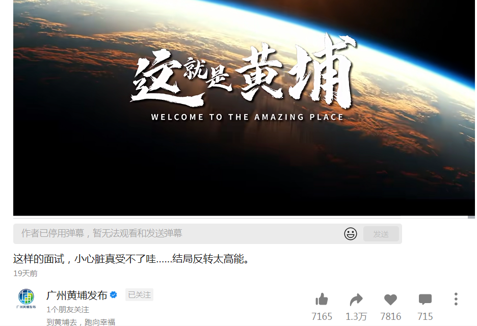 广州黄埔发布:面试对话场景“反转”为城市宣传片,创新表达、幽默互动获舆论肯定(←点击查看)