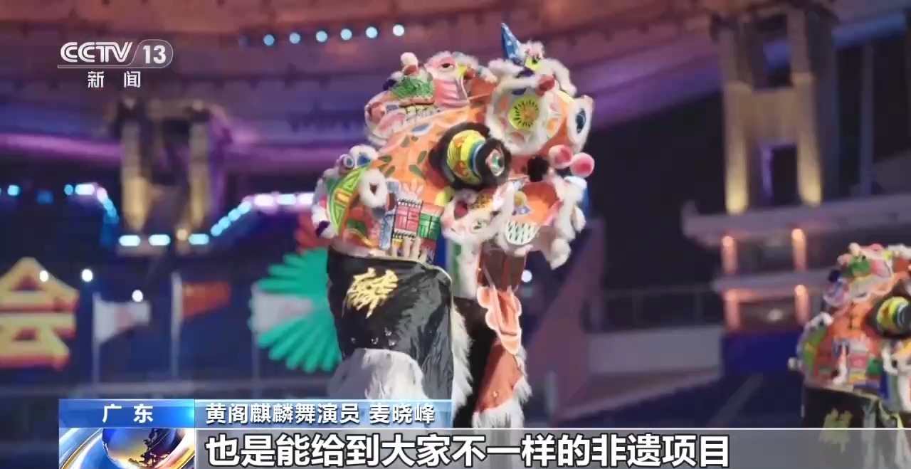 黄阁麒麟舞演员 麦晓峰:黄阁麒麟舞也是第一次出现在全国人民的眼中,也是能分享给大家不一样的非遗项目。