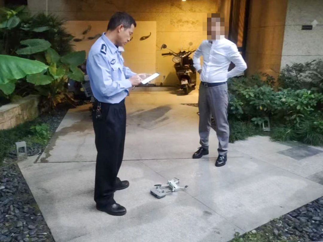 10月25日18时许,广州白云区同和街道某小区附近,有无人机疑似“黑飞”。白云警方接到线索后,立即安排民警开展排查,随后在该小区某房屋顶层,现场查获正在操作该无人机的王某。