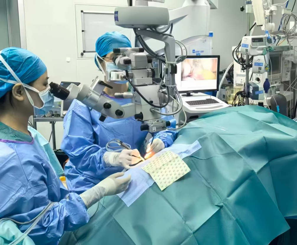 白内障手术核心流程是移除混浊老化的晶状体、植入人工晶状体。手术当天,团队又面临三重技术难题:一是眼睑缝隙狭窄且术中罗爷爷出现不可控摇头、眼球转动等情况,在主刀医生高倍显微镜下视野出现“震动干扰”;二是晶状体核硬度达“陈年核桃”级,容易导致囊膜破裂、悬韧带断裂;三是过熟期晶状体阻挡眼底红光反射,操作失去光学定位依据。