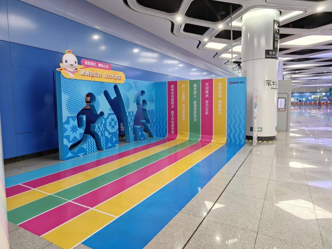 此外,为营造浓厚的赛事氛围,4号线、13号线相关车站已增加全运会信息播报和宣传海报,深圳北站、福田口岸站、深圳湾口岸站上线全运会主题打卡互动点,市民中心站、少年宫站、上梅林站等9个车站的社区画廊推出“全程全运 港铁同行”主题海报,让市民和旅客在出行中感受体育盛事的热情与魅力。