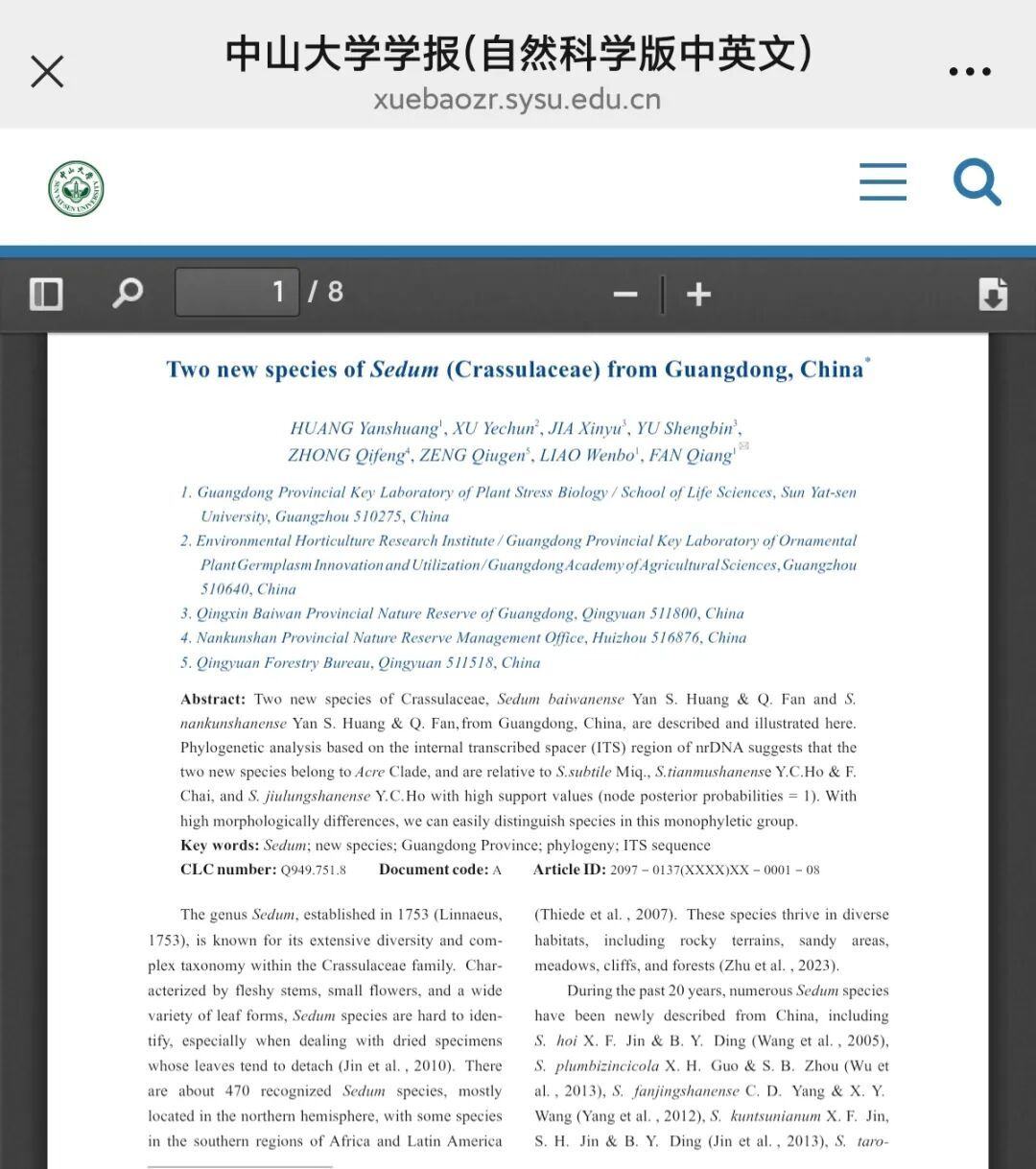 白湾景天作为喀斯特地貌的特有植物,具备较强的耐旱适应性,研究团队认为其在“绿美广东”生态建设中,尤其在石山绿化与生态修复方面,具有潜在的应用价值。
