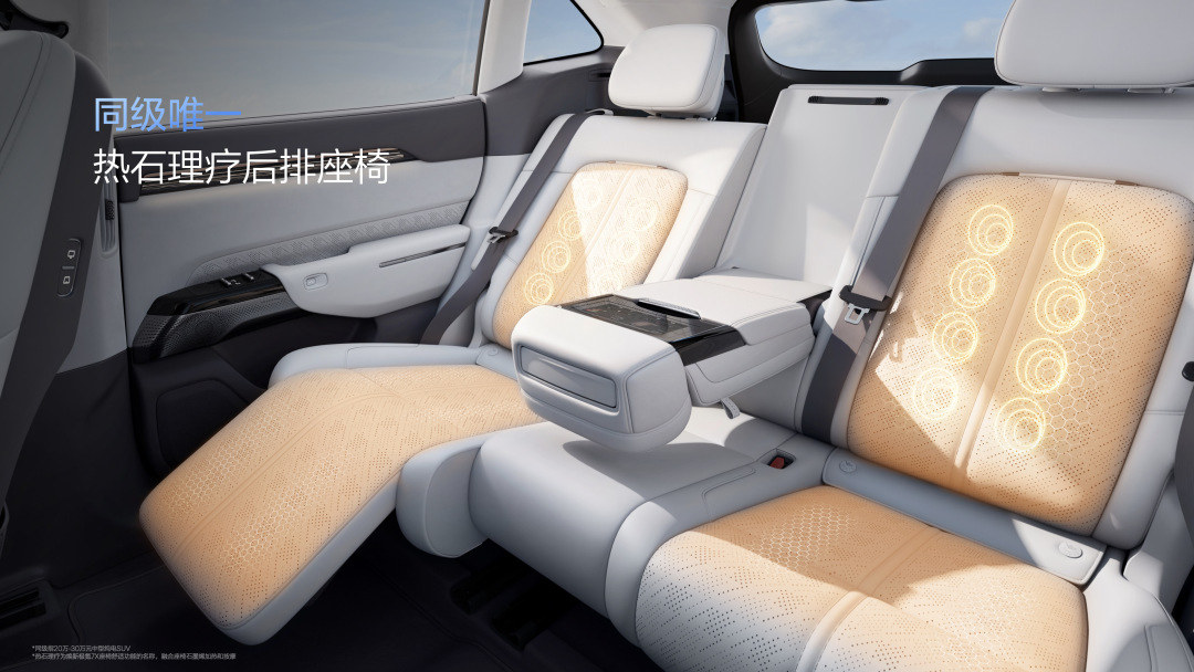 在空间与豪华配置上,依托SEA浩瀚架构,新车实现83.34%的同级领先得房率,后排腿部空间达1187mm,后备厢空间为905L,均为同级最佳,并配备40处储物空间。针对家庭用户便捷性需求,车型搭载同级唯一的二排可移动滑轨,近90°二排最大开门角度,方便儿童座椅拆装与抱娃上下车。后排配置上,新车新增同级独有的石墨烯加热、热石理疗功能,同时集成电动躺椅、电动腿托、电动遮阳帘、电动桌板、后排电动智慧屏及后排中央扶手6英寸点触智慧屏,打造豪华MPV级后排体验。