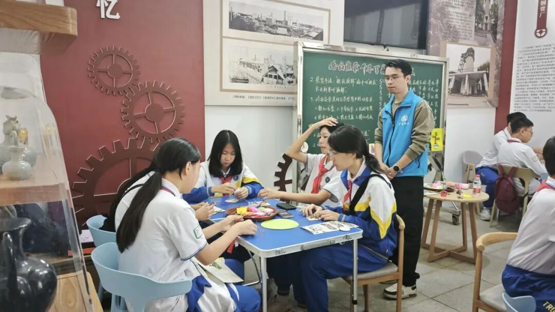 课程最后的内容是盆景手工体验,导师结合此前鉴赏的岭南盆景特点,先示范盆景手工的制作技巧。示范结束后,学生们迫不及待地动手创作,有的模仿园里看到的虬枝盆景,有的发挥想象做了彩色花瓣的创意盆景。遇到叶片粘不牢、花盆捏歪的问题,导师还手把手进行指导。一个小时后,一盆盆形态可爱、充满童趣的橡皮泥盆景陆续完成,孩子们捧着自己的作品,凑在一起互相展示,脸上满是成就感,纷纷拍照定格这份喜悦。