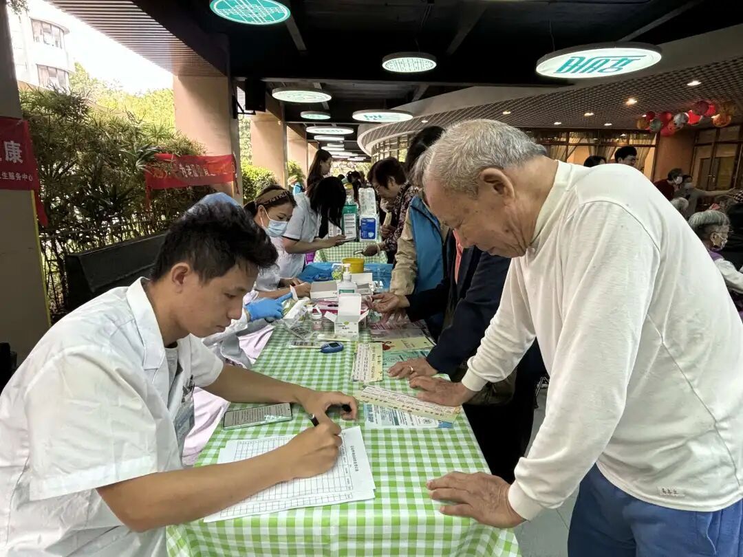 养老服务宣传摊位上,工作人员耐心讲解养老服务细节,为长者规划幸福晚年;四项健康检测专业人员严谨操作,听力、口腔、乙肝筛查、血糖检查细致入微,还叮嘱老人们注意事项,让健康关怀满含温度。