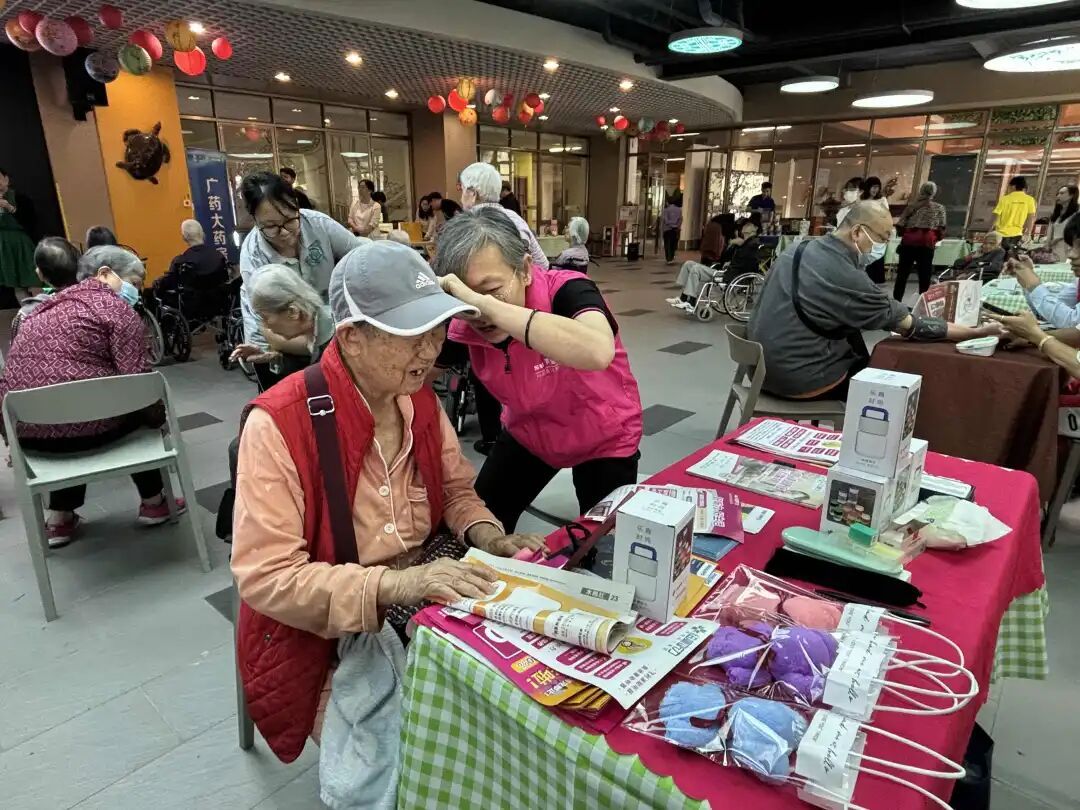 平安通服务宣传区,工作者手把手教学使用方法,为长者安全增添保障;药品科普与应急宣传员则通过趣味讲解、实物演示,帮助长者掌握用药常识与急救技巧。
