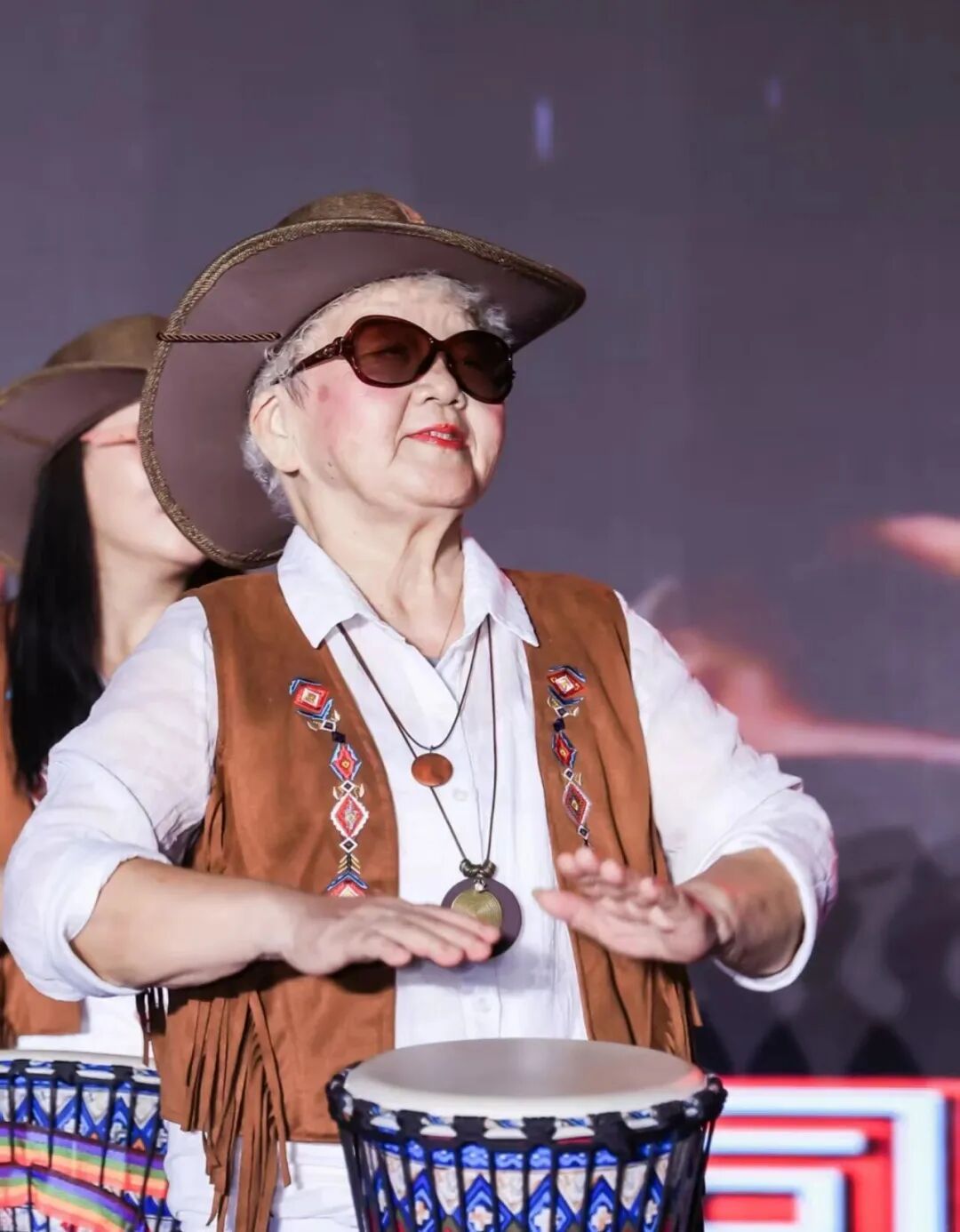 10月12日晚,在运动会开幕式的舞台上,一支由长者组成的文艺团体——丽江同心艺术协会(以下简称“协会”),以一场充满激情与创意的大合唱和非洲鼓表演,赢得了现场观众的热烈掌声。作为该协会负责人,75岁的郭静琳带领着她的百人团队,用艺术诠释着“全龄参与、活力湾区”的深刻内涵。