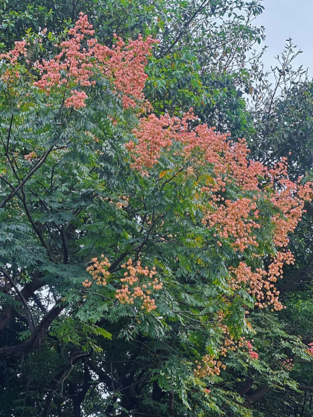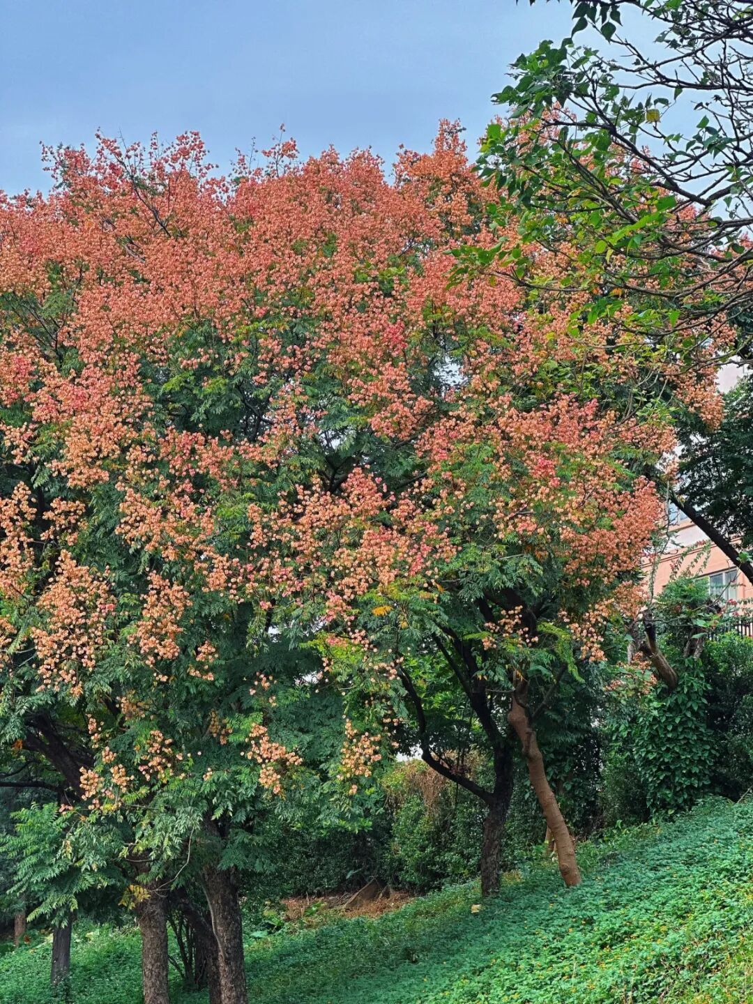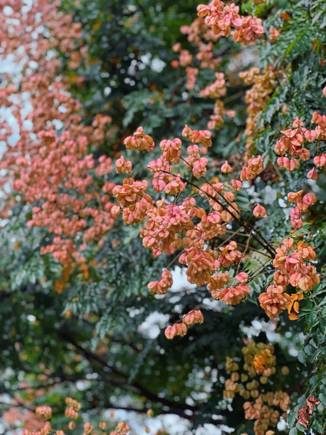 此时的栾树正值最佳观赏期,青黄粉红同树绽放,既有夏日的生机余韵,又含秋日的静谧绚烂,完美诠释其“奇妙震撼绚烂的一生”的花语。