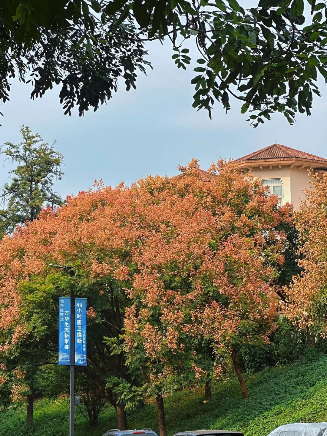 步入位于南村镇的雅居乐花园观景路,行道旁的栾树宛如大自然的调色师,葱茏的绿叶间,缀满精致小巧的“小灯笼”,风一吹便轻轻晃动,“仿佛暗哑作响的小铃铛”。