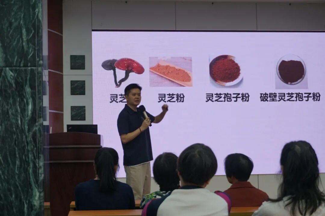接下来的科普讲座环节,讲师通过图文并茂的PPT和通俗易懂的语言,系统介绍了各类食用菌、药用菌的营养价值及养生技巧,并重点讲解了灵芝孢子粉的保健功效。大家认真聆听、踊跃提问,现场气氛热烈。讲师还就“如何挑选新鲜菇菌”“菇菌怎样烹饪更入味”等生活问题一一解答,贴近实际的内容深受欢迎。