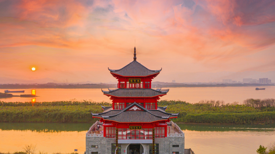 据了解,三水区白坭文创特色小镇(首期)水经济试点项目立足西江畔生态基底,以万里碧道白坭段为纽带,串联起聚贤楼、五人龙舟博物馆、西江美食街及三巷村等特色文化IP。众人登上聚贤楼,凭栏远眺,西江碧波与连片农田交相辉映,楼内白坭历史文化展陈与窗外水乡风光相得益彰,让人直观感受“楼映江景、文融生态”的独特韵味。