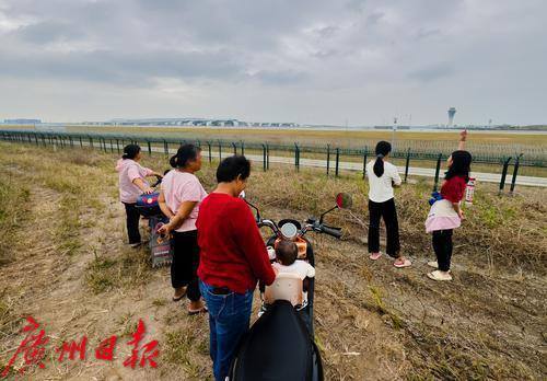 机场外附近有些村民准备观看飞机起飞。