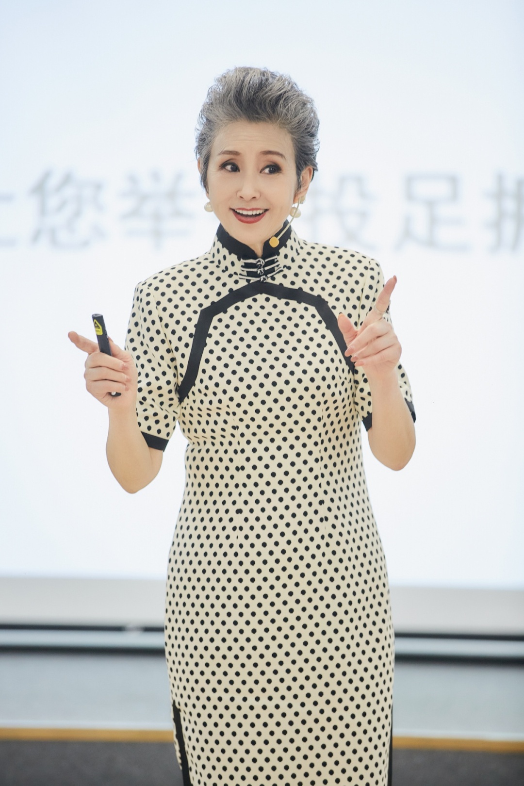 在聚光灯下,她步履从容,一袭旗袍勾勒出东方女性的端庄与风韵。舞台上的她气场十足,是当仁不让的女王;眼前的她,一袭素雅旗袍,身材高挑,银发飘逸,微哑的嗓音自带令人平静的磁性,更像和蔼可亲的邻家长辈。讲到兴起时,她常起身示范——眉眼传情,手势生动,随口哼唱,一个故事便鲜活起来。