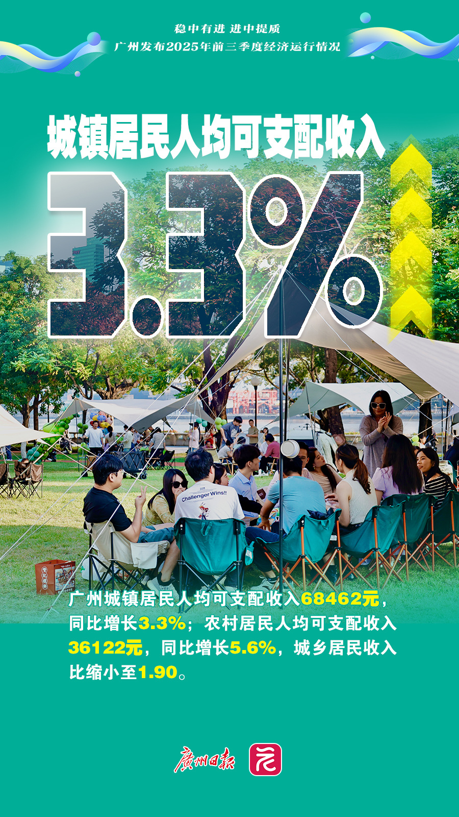根据广东省地区生产总值统一核算结果,2025年前三季度,广州市地区生产总值23265.65亿元,按不变价格计算,同比增长4.1%。