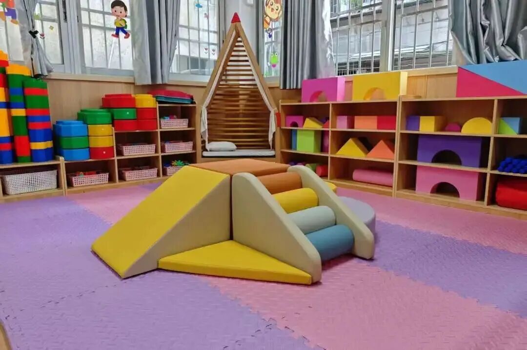 室内区域划分为:蒙氏游戏区、感统游戏区、奥尔夫音乐角、绘本区……该中心负责人表示,中心构建了三大亮点课程,从心智、身体到感官,全方位支持婴幼儿的协调发展。