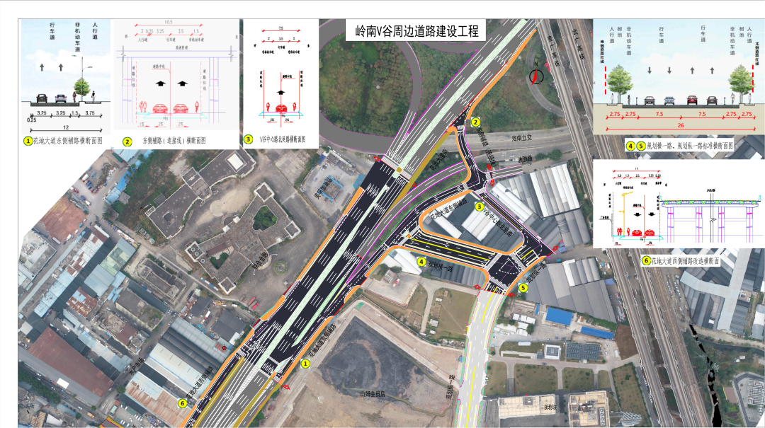 此前,岭南V谷片区主要依赖花地大道南辅路及部分村道通行,交通压力较为集中,高峰期拥堵问题频发。随着山姆会员店正式签约入驻,区域交通承载能力将面临更大挑战。荔湾区住房建设和园林局副局长肖锡斌介绍,针对荔湾山姆会员店开业后的交通增量需求,荔湾启动岭南V谷周边道路建设工程,新建道路3条,包括花地大道东侧辅道、规划横一路、规划纵一路;同时改造原有道路3条,包括花地大道西侧辅道(增加一车道及非机动车道)、花地大道东侧辅道连接线、岭南V谷中心路北延路,共新建、改造6条道路,总长约1.01公里。